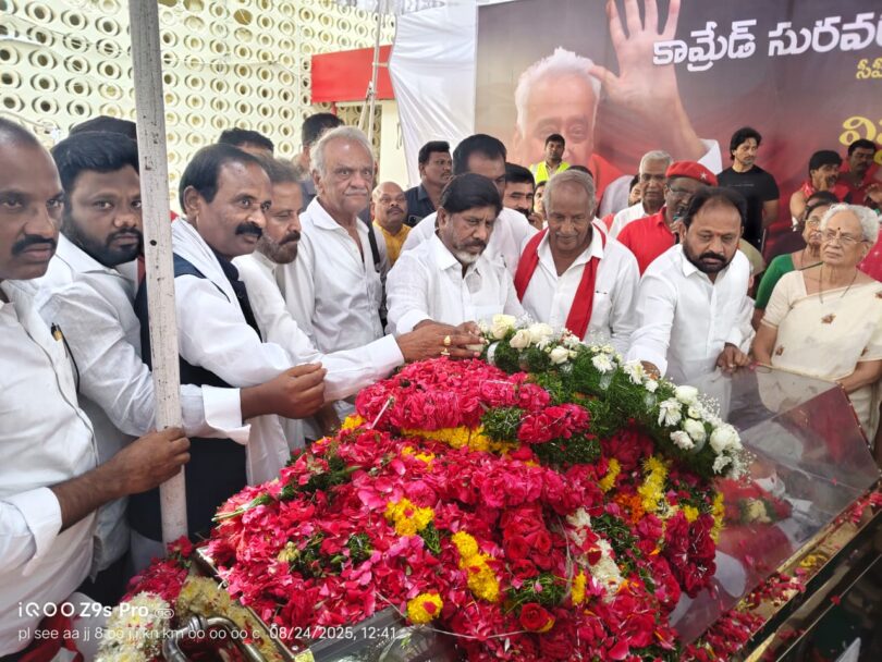 కామ్రేడ్ సురవరం సుధాకర్ రెడ్డికి నివాళులు…జిల్లా కాంగ్రెస్ కమిటీ అధ్యక్షులు పువ్వాళ్ళ దుర్గాప్రసాద్